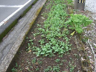 体育館前に植えた菜の花の種が芽吹いて少しずつ大きくなってきています。春が楽しみです。