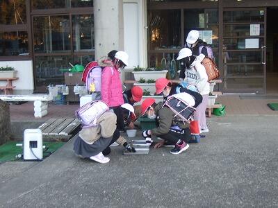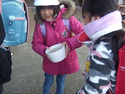 今朝の都井はマイナス3度。他の地域も大変寒かったようです。子どもたちが楽しみにしていた雪は積もらなかったのですが、玄関にためていたバケツやトレイの水には大きな氷が張っていて大喜びの子どもたちでした。