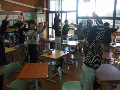 34年生も朝の会中。自分たちでしっかりと進めていました。朝の体操にみんなで楽しく取り組んでいました。
