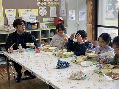 給食時間も大学生といろんなお話ができて楽しそうでした。