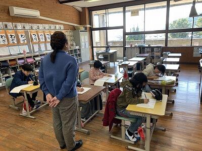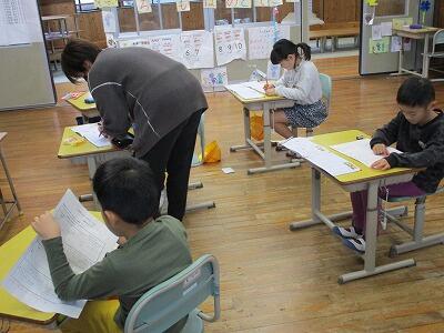 6年生です。担任の黒原先生と一緒に6年の学習の復習をしていました。