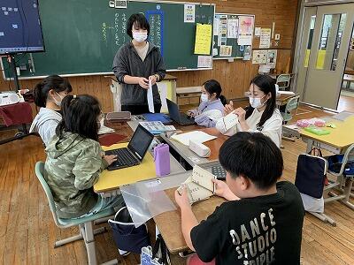 今日は南九州大学3年生の時吉さん、宮内さん、徳永さん、森木さんの4名が学校へ来てくださいました。授業では子どもたちにアドバイスをしたり、工作や実験の手伝をしてくれたりしていました。お昼も一緒に食べて、昼休みは子どもたちと一緒に遊んでくれました。おかげで、子どもたちはいつも以上に楽しく元気に過ごせたようです。