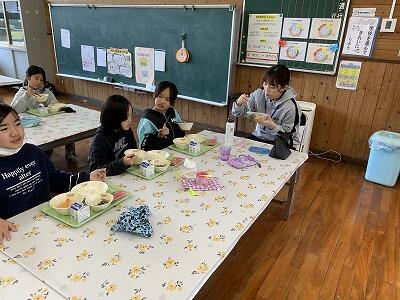 給食時間も大学生といろんなお話ができて楽しそうでした。
