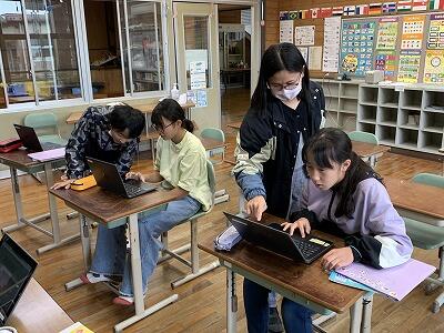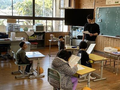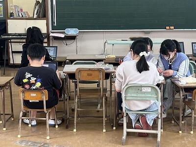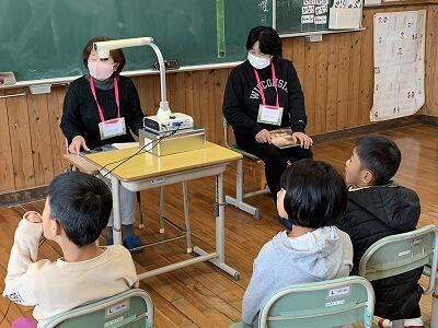 今日は南九州大学3年生の時吉さん、宮内さん、徳永さん、森木さんの4名が学校へ来てくださいました。授業では子どもたちにアドバイスをしたり、工作や実験の手伝をしてくれたりしていました。お昼も一緒に食べて、昼休みは子どもたちと一緒に遊んでくれました。おかげで、子どもたちはいつも以上に楽しく元気に過ごせたようです。