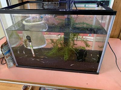 56年生教室前のメダカも冬を乗り切って元気になってきました。