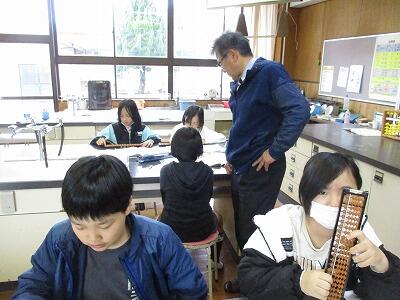 3年生です。学年最後の学習そろばんに挑戦していました。