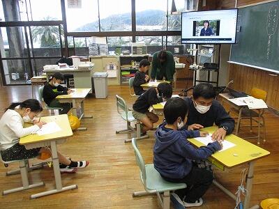 56年生は明日の学習発表会に向けて最後の確認練習をしていました。内容は都井地区の安全管理についてとても詳しく調べているようです。明日の発表が楽しみです。