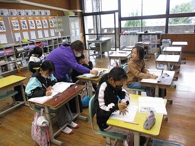 4年生は教頭先生と国語の復習中でした。いろいろな難しい漢字をしっかり覚えるため頑張っていましたよ。