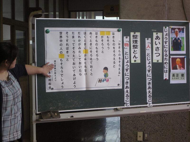 6/2(火)、全校朝会がありました。校長先生の話の後に、川内先生の話がありました。サッカー協会の「長沼健」さんの言葉についてでした。最後に月の歌を全校児童で歌いました。