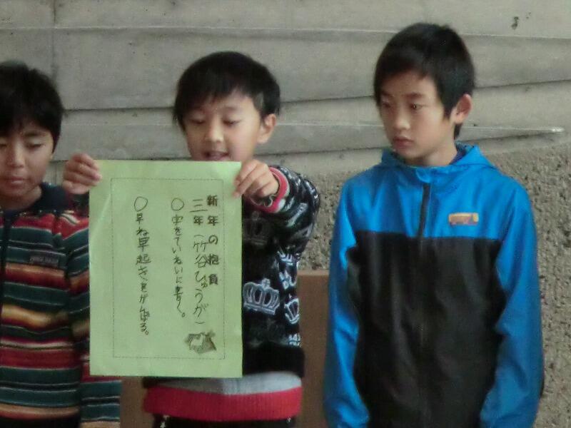 1月8日(水)、今日から3学期のスタートです。始業式では、意見発表があり、6年生の優紀さんが①進んで行動したい②自分に自信をもちたい③絆を大切にしていきたい等、何も見ずに堂々と発表してくれました。その後、全校児童一人一人が「今年の抱負」を述べてくれました。目標を高くもって、すばらしい一年にして欲しいものです。