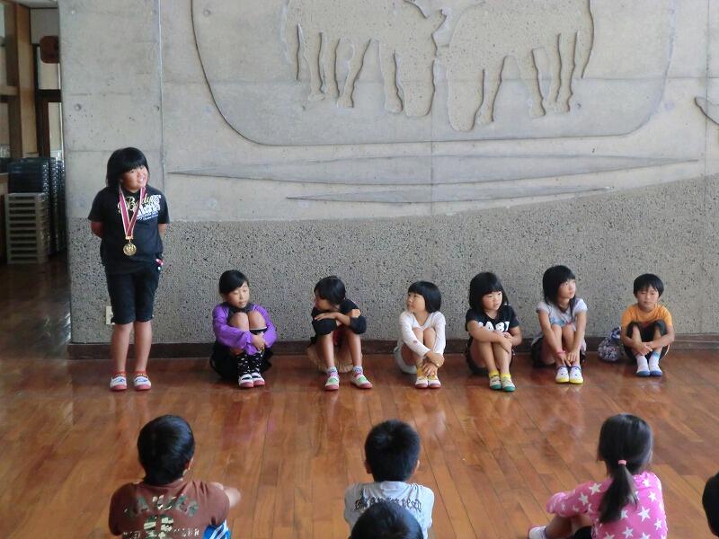 10/22(火)の朝の活動は、スピーチ集会!まず、長友先生がスピーチのポイントを説明。スピーチの仕方①「今からスピーチをはじめます」②「私の宝物は○○です」③なぜかというと、○○だからです」※宝物についての思い出も話す④「これでスピーチをおわります」の順番に沿って、7人の児童に実物を見せてもらいながらのスピーチ!。6年の優紀さんは、「メダル」、4年の絢乃さんは「手紙」、3年生の梨乃さんは「お守り」、2年生のひなのさんは「シール」・優芽さんは「一輪車」、1年生の心晴さんは「ぴかちゅーのぬいぐるみ」・光輝さんは「ボール」でした。なぜ、宝物になったかも上手に説明ができました。
