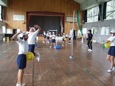 今日は3年生から6年生の合同体育がありました。内容はソフトバレーボール。56年生が34年生に上手に教えていました。