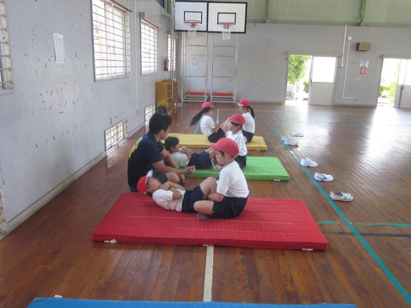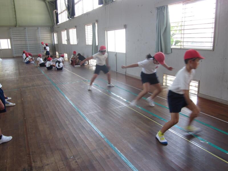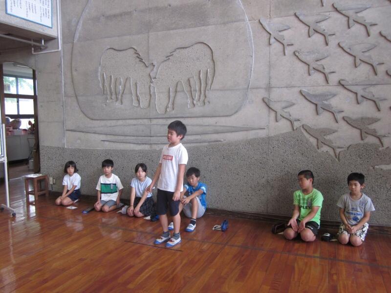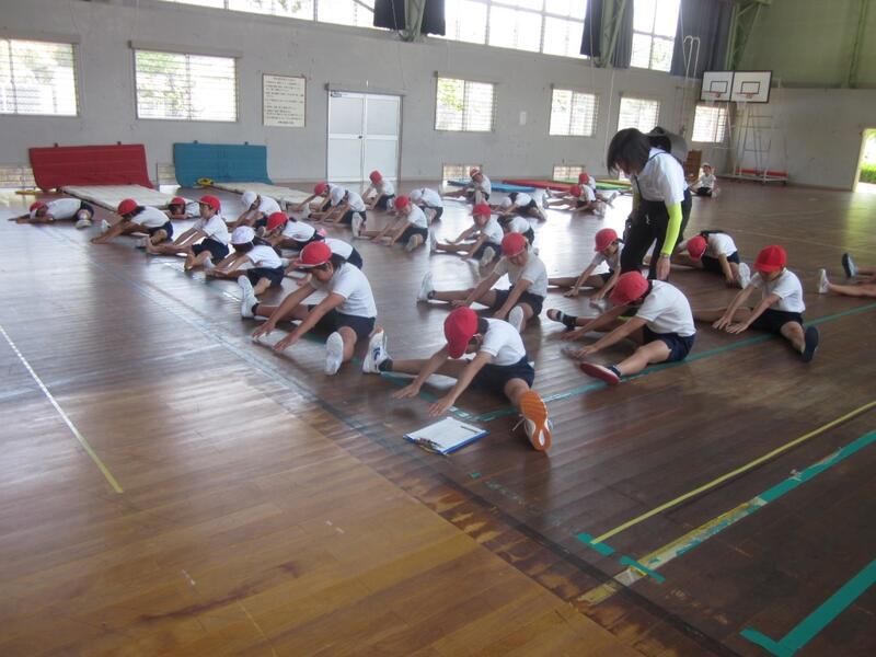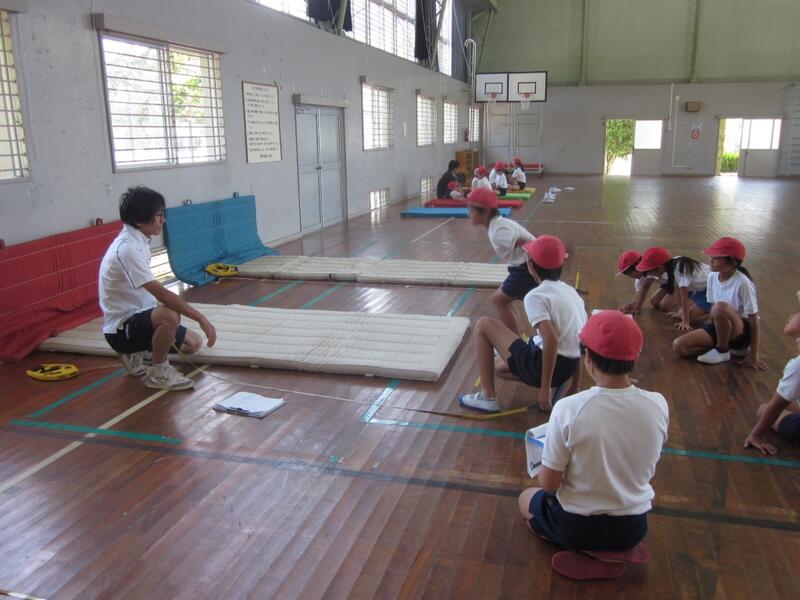 体力テストに取り組みました。縦割のに分けた班ごとに上級生が下級生の面倒をみながら熱心に活動してました。