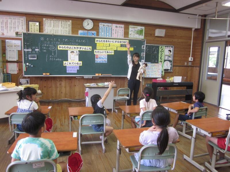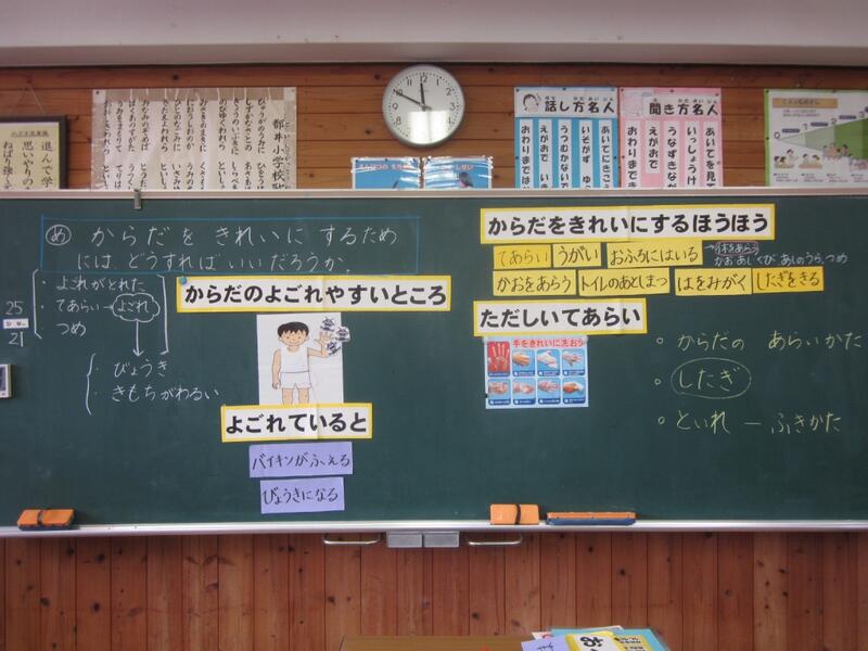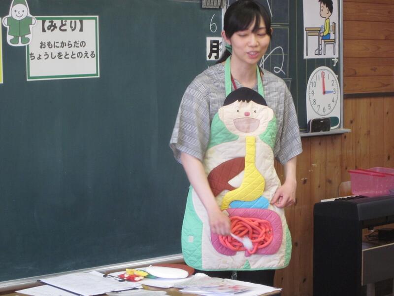 1・2年生が「体をきれいに」をテーマに養護教諭の先生と学習しました。
