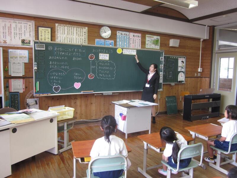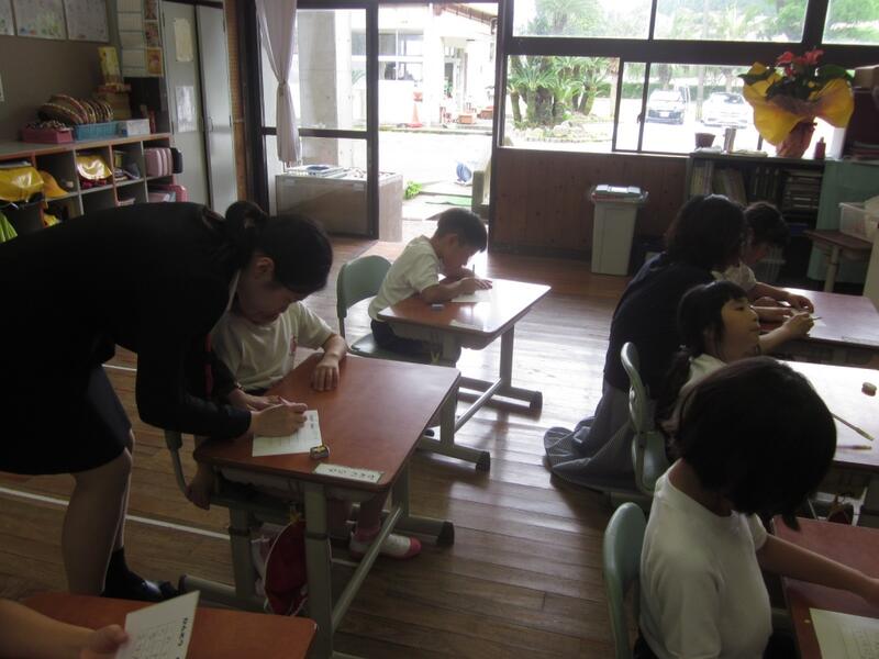 教育実習生が1・2年生の実習授業で道徳を行いました。複式指導で授業を行うのは難しいのですが、子どもたちの様子を見ながら大変熱心に指導されていました。