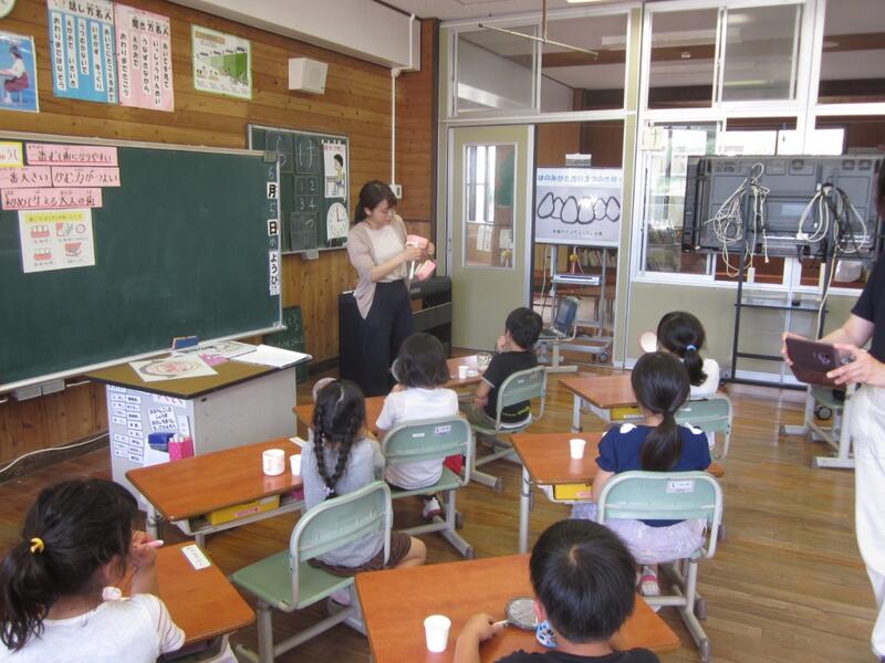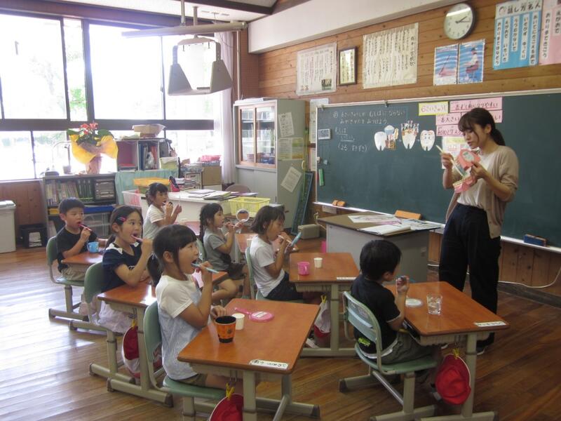 1・2年生が養護教諭の先生と「歯磨き」の勉強をしました。むし歯にならないために歯磨きをがんばってほしいです。