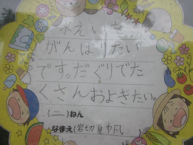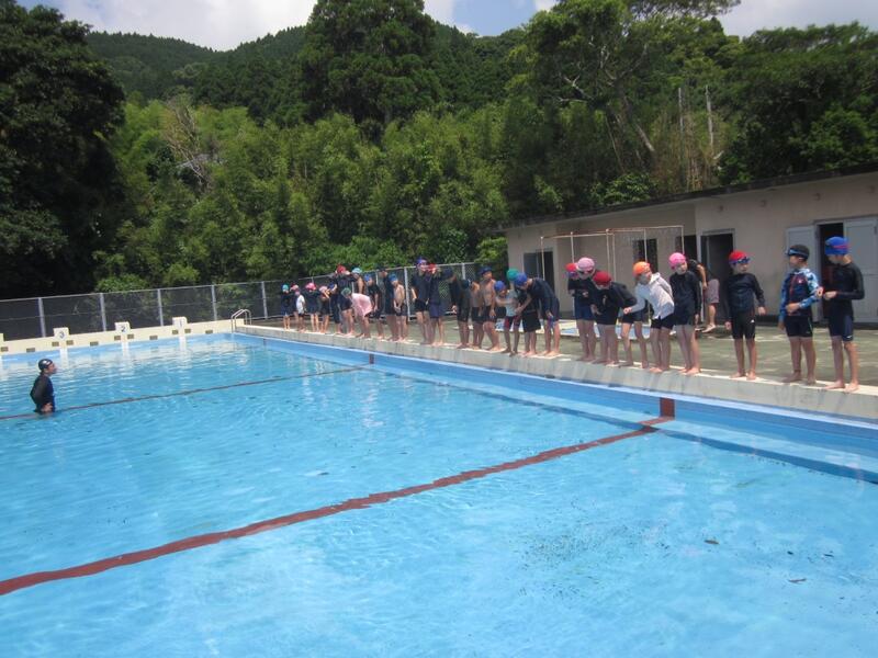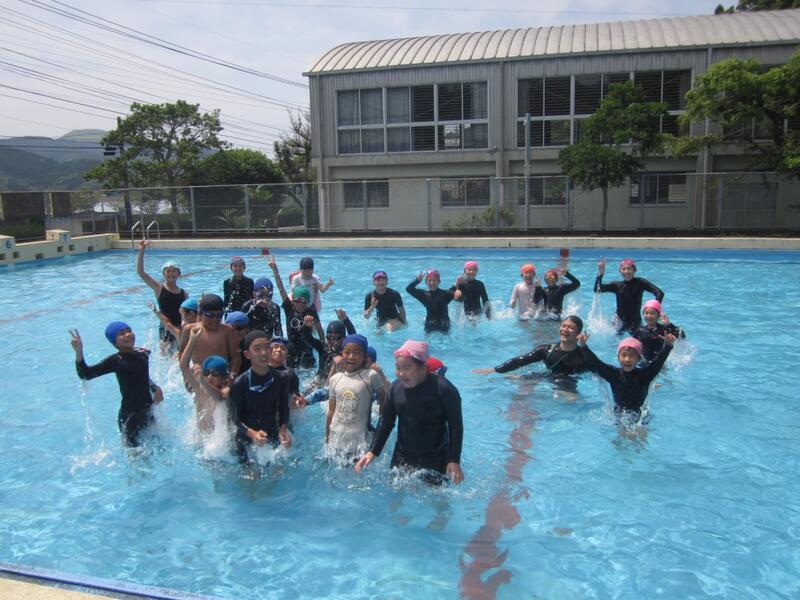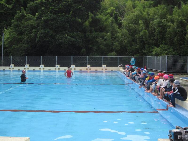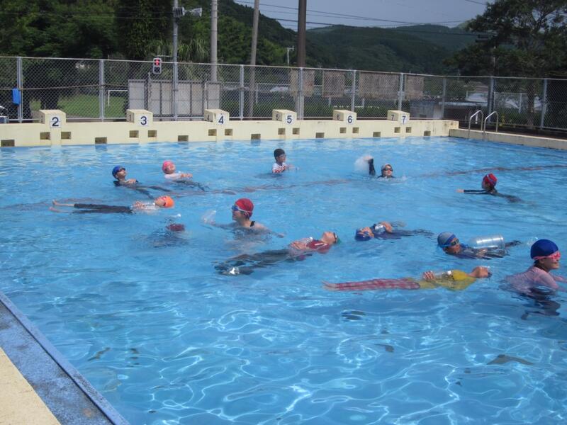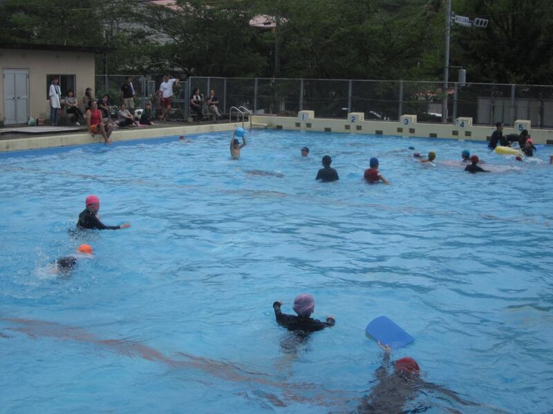 午後からは磯遊びをする予定でしたが雨のためプールで遊びました。授業とはまた違った雰囲気で楽しい遊びになりました。