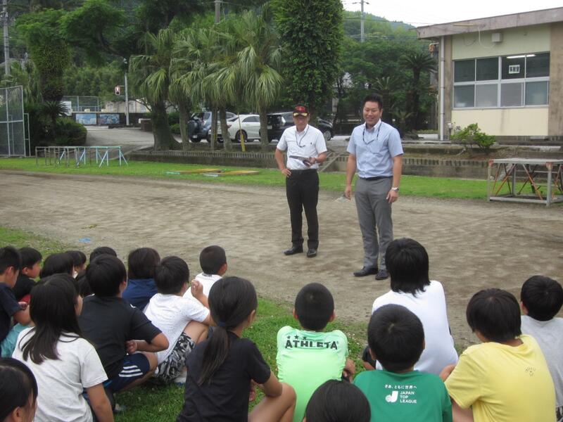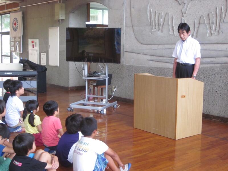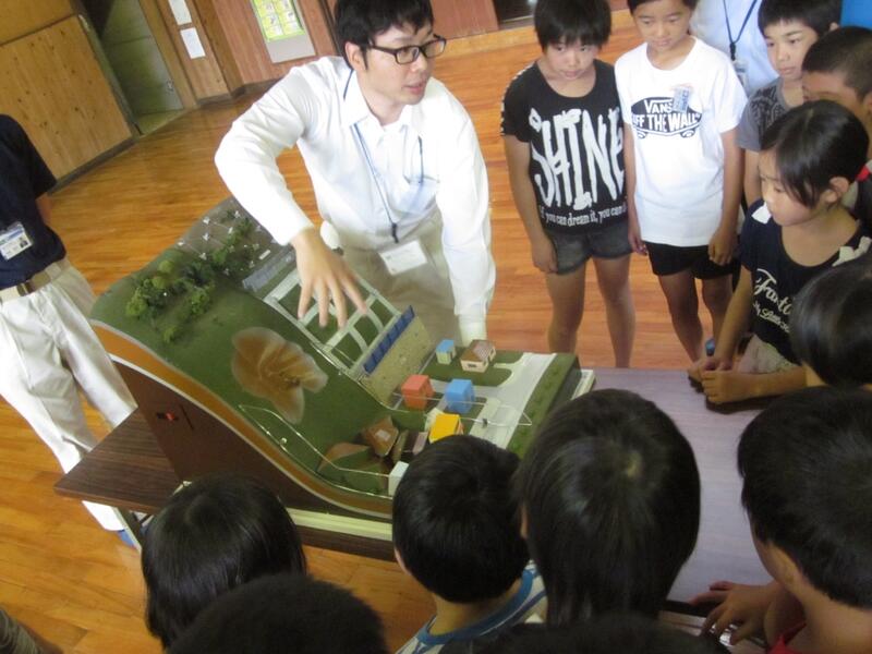 串間土木事務所の方を招いて「土砂災害防止教室」を開きました。子どもたちは模型を見たり説明を熱心に聞いたりしていました。これからの生活に役立ててほしいです。