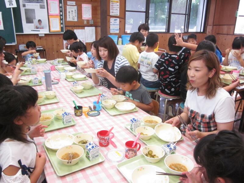 本年度も保護者の「給食試食会」を開きました。保護者と一緒に食べる特別な時間を子どもたちも楽しんでいました。