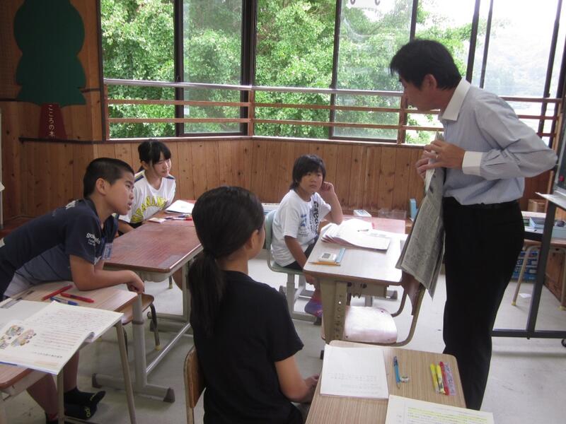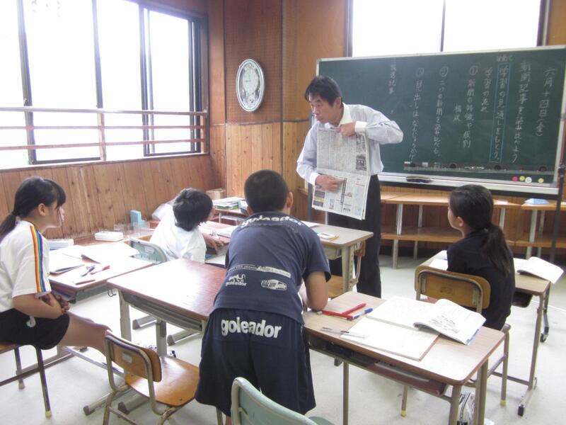 校長先生が5年生の国語の授業中にアドバイスをされました。「新聞」についての内容でした。