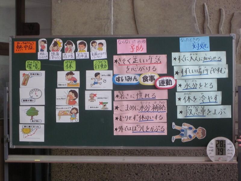 全校朝会を開きました。もう少しで1学期が終わります。自分を振り返ってみましょうと校長先生が話されました。今月の担当の保健室の先生から「この時期にかかりやすい病気」についての話もありました。どの話も熱心に聞き入っている子どもたちでした。