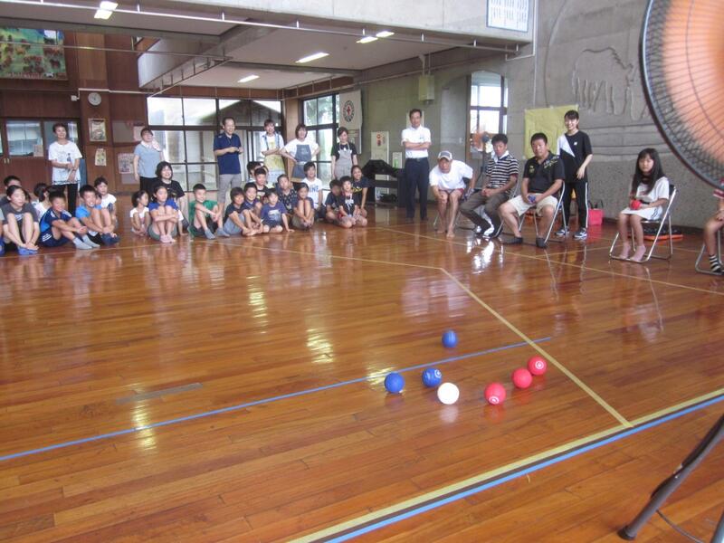 本年度も保護者主催のレクリエーションを行いました。今年も秋山小の親子の皆さん、校長先生、教頭先生が参加してくださいました。午前中は障がい者スポーツ「ボッチャ」に挑戦しました。普及活動をされているUMKテレビ宮崎の柳田アナウンサーも参加してくださり指導していただきました。