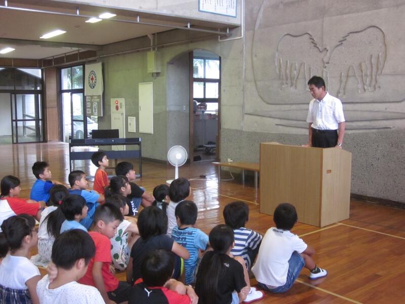 1学期終業式を行いました。校長先生が「夏休みは何のためにあると思いますか?」と問いかけられ、長い休みを有意義に過ごすことの大切さを話されました。また命を大切にしてほしいと声をかけられました。代表作文の発表もありました。