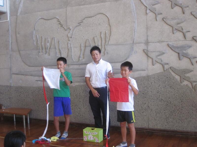 運動会の結団式をしました。各団長がくじ引きで旗を引き団の色が決まりました。各団ごとの練習もしました。団長、副団長、リーダーを中心にがんばってほしいです。
