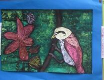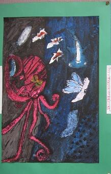 新2年生が図工の時間に「ひみつのたまご」という作品を作りました。学年が一つ上がり色のぬり方も上手になってきました。