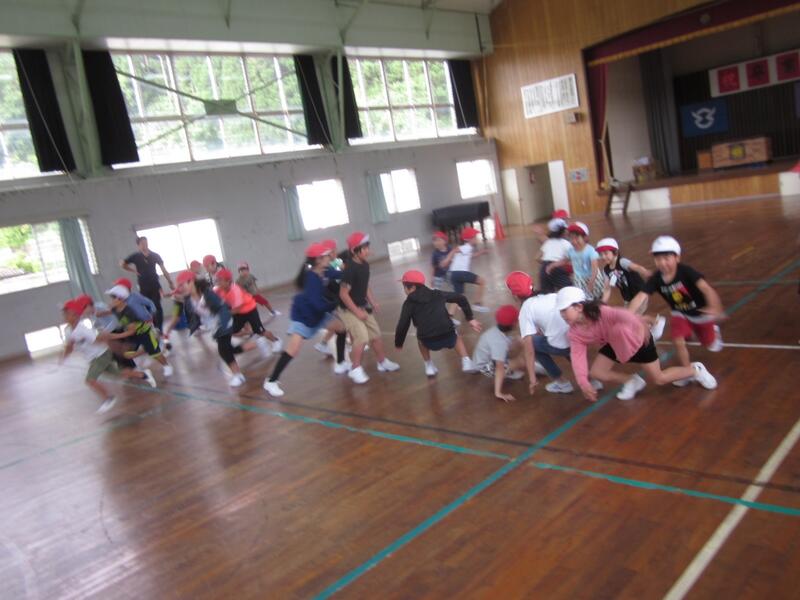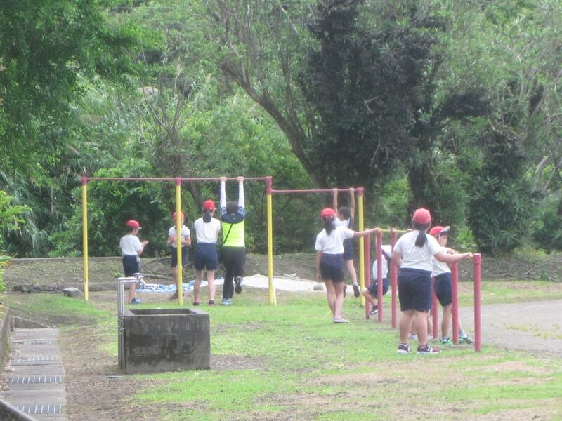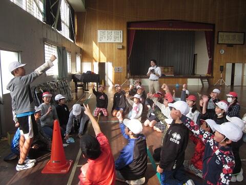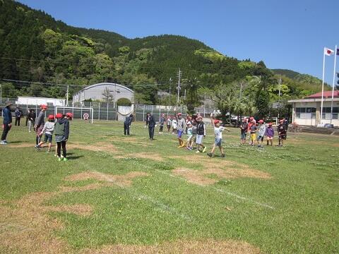 体力テストに向けて全校児童で体力づくりに取り組んでいます。