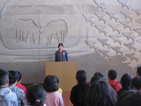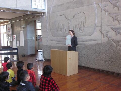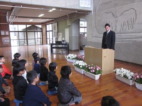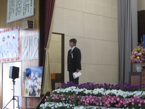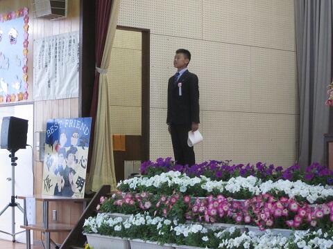 全校朝会がありました。今月担当の図師先生からは「友達」についての話がありました。卒業、進級を前に改めて友情を考えるすてきな時間になりました。
