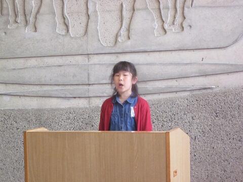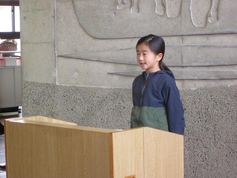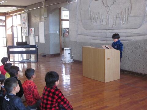 2年生が国語の時間に音読発表会をしました。校長先生が参観に来られた中、1年生の前で発表しました。