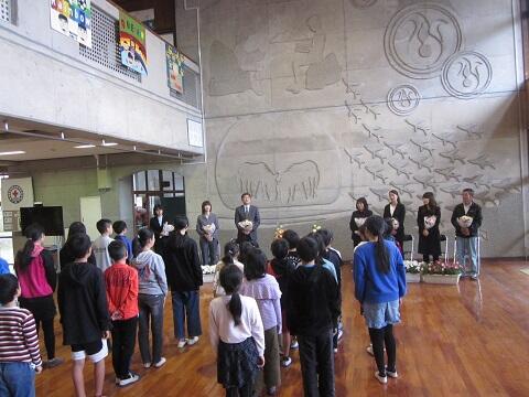 本年度で定年退職される校長先生をはじめ、退職、転勤される先生方と離任式を行いました。涙が多く見られる時間でした。都井小を旅立たれる先生方のこれからの御健康と御多幸を心からお祈り申し上げます。