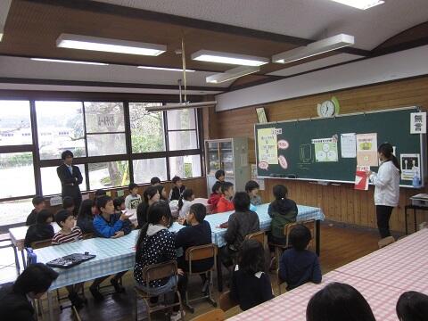 1年生が給食の食べ方やトイレの使い方の学習をしました。2年生も一緒に勉強しました。