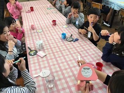 1年生が初めての歯みがきをしました。むし歯ゼロ目指して毎日しっかりみがいてほしいです。