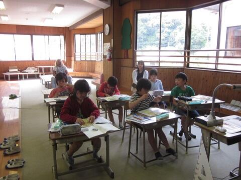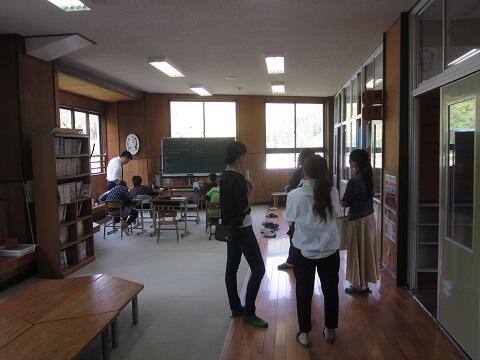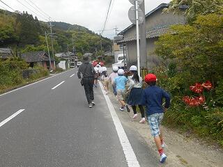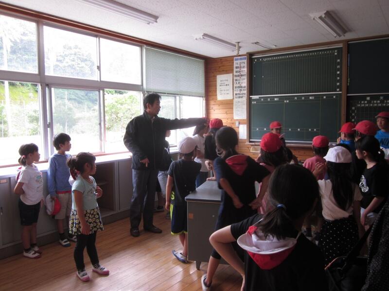 全校児童で遠足に行きました。旧都井中の見学をしました。以前旧都井中に勤務していた校長先生より説明を受けました。