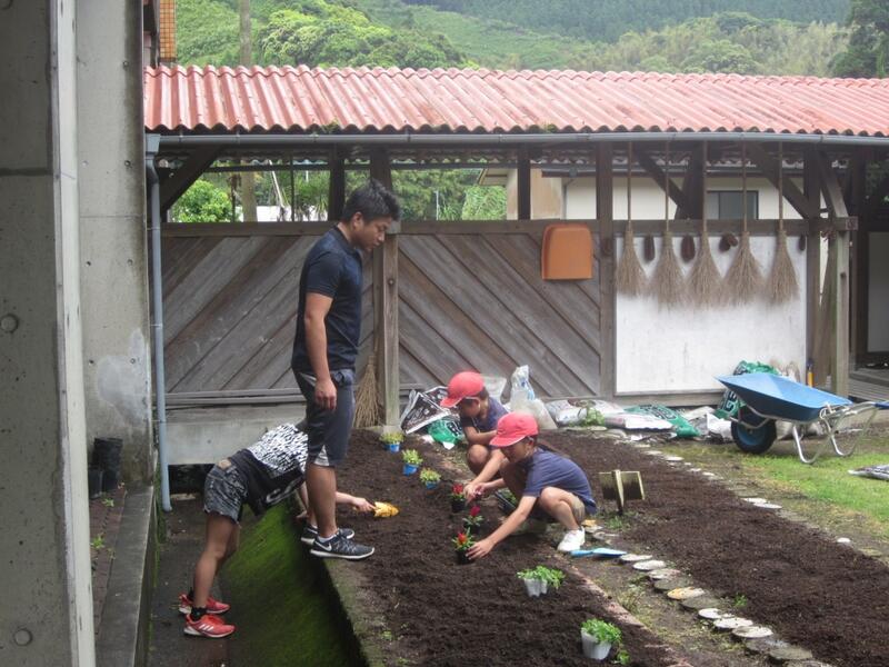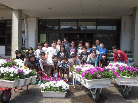 全校児童で花壇の花植えをしました。きれいに咲くようにお世話を頑張ります。