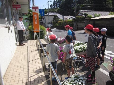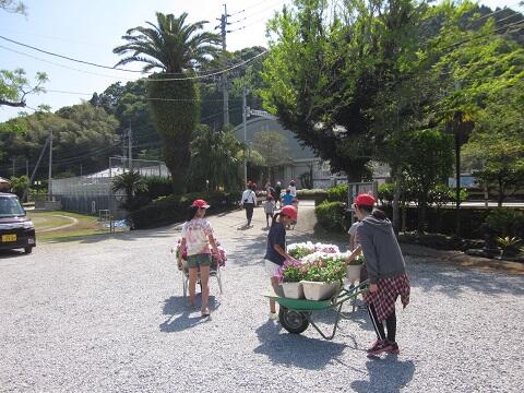卒業式、入学式まで大切に育ててきたプランターのお花をみどりの少年団活動として地域の施設へ届けました。