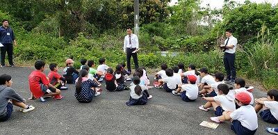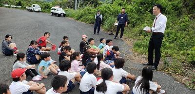 地震津波の災害に備えて避難訓練をしました。市危機管理課、都井駐在所の方々にご指導いただきました。自分の命は自分で守れるように日頃から考えて行動します。