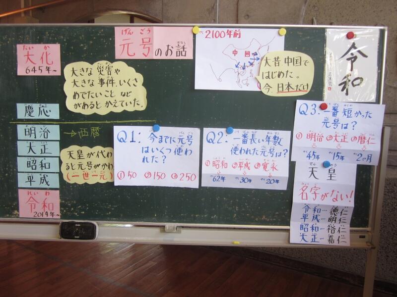 今月の担当の先生から「年号」の話がありました。令和になった時期にいい勉強をしました。