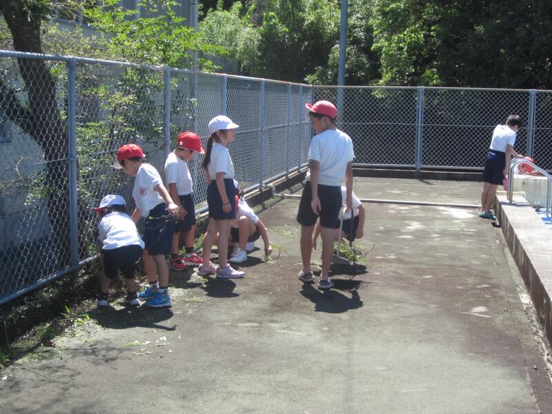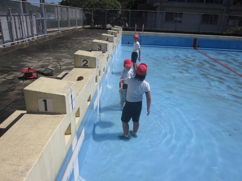 全校児童でプール掃除をしました。今年も水泳の学習が頑張ることができるように一生懸命きれいにしました。プール開きが楽しみです。