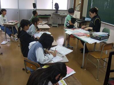 今日も子どもたちは元気に登校しました。今日4年生は算数の授業で休んでいた友達に習った内容を分かりやすく伝えるという授業を行いましたが、「千の位までのがい数」を分かりやすく教えていました。