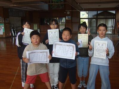 今日は全校朝会がありました。3つの表彰がありました。受賞した6名に校長先生が賞状を渡すと大きな拍手が沸き起こっていました。
