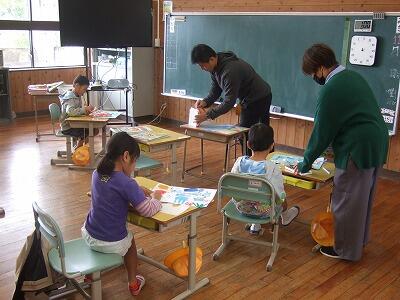 今日は都井小学校に教育委員会の吉松教育長や串間市内小中高校の校長先生方が来られました。都井小に初めて来たという校長先生もいらっしゃいました。午前中に校長会が行われ、子どもたちは元気よく挨拶をしていました。