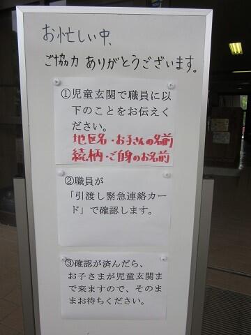 本年度の風水害の避難訓練は、「保護者へ児童を引き渡す」練習をしました。平日にも関わらずたくさんの保護者の方々にご協力いただきました。