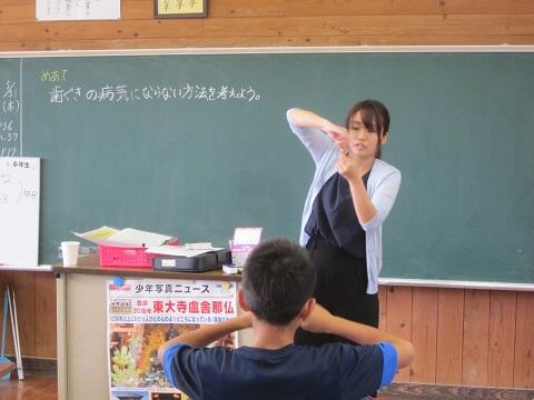 養護教諭の山田先生と学習を積極的に行っています。今月は「むし歯予防」がテーマです。