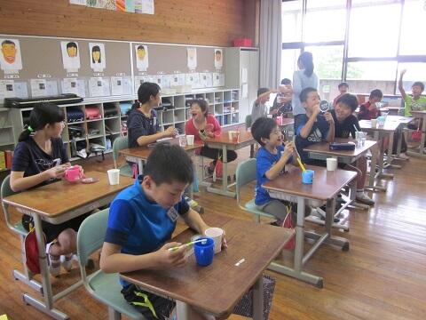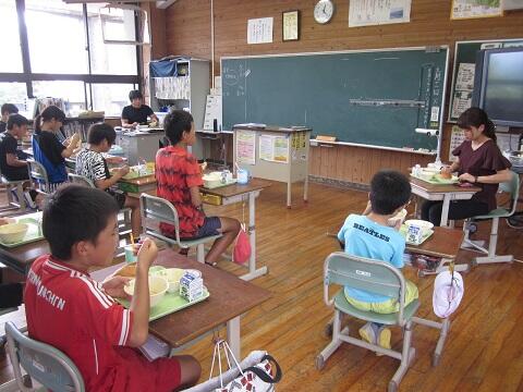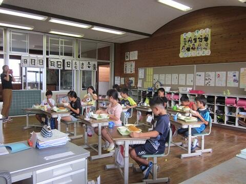 串間市教育委員会の方々が来校され、授業や給食の様子を参観されました。子ども達のがんばりをほめていただきました。