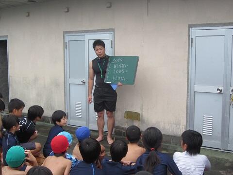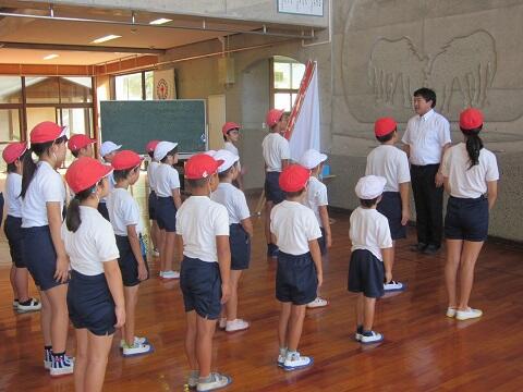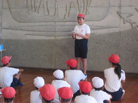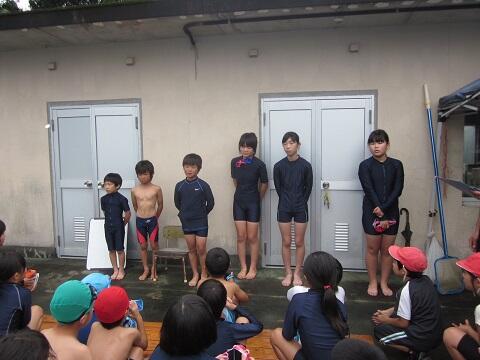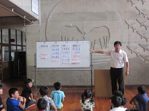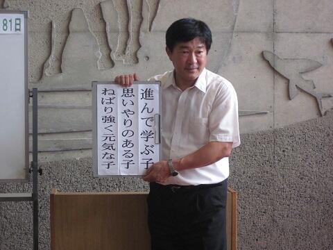 「学校目標『ねばり強く元気な子』を実践しましょう。今月は水泳を頑張りましょう。」