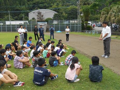今年も不審者対応訓練を行いました。串間警察署の方、都井駐在所長さんにお越しいただきご指導いただきました。