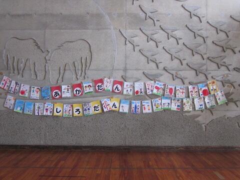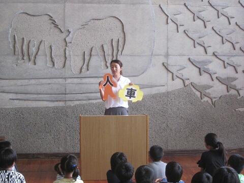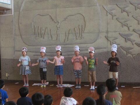 とびうお集会で、2年生が国語の学習発表や英語の歌をがんばりました。